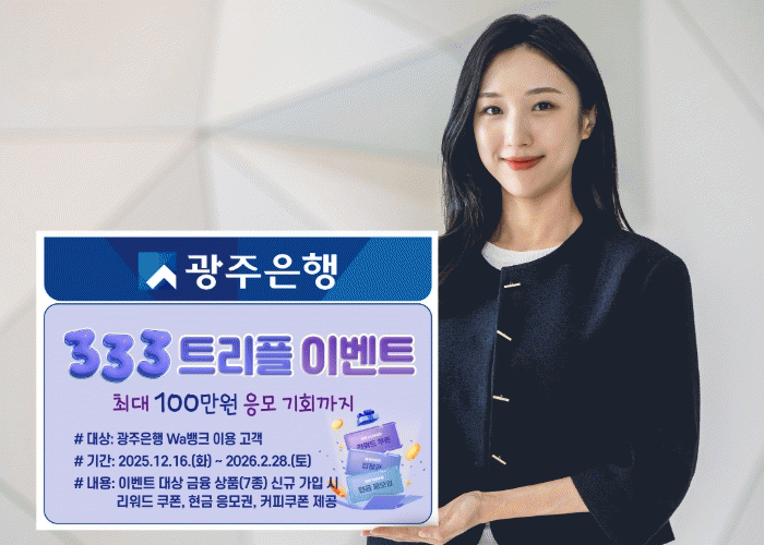 ±¤ÁÖÀºÇàÀº 2025³â 12¿ù 16ÀϺÎÅÍ 2026³â 2¿ù 28ÀϱîÁö ±¤ÁÖÀºÇà Wa¹ðÅ© ÀÌ¿ë °í°´À» ´ë»óÀ¸·Î ¡®333 Æ®¸®Çà À̺¥Æ®¡¯¸¦ ÁøÇàÇÑ´Ù°í ¹àÇû´Ù.