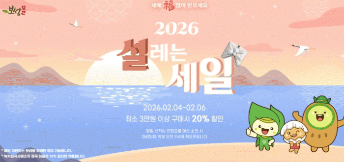 º¸¼º±ºÀº ¼³ ¸íÀýÀ» ¸Â¾Æ ¿À´Â 2¿ù 4ÀϺÎÅÍ 3Àϰ£ ³óƯ»ê¹° ¿Â¶óÀÎ ¼îÇθô ¡®º¸¼º¸ô¡¯¿¡¼ ÃÖ´ë 20% ÇÒÀΰú ´Ù¾çÇÑ Àû¸³ À̺¥Æ®¸¦ °áÇÕÇÑ Æ¯º° ÇÒÀÎ Çà»ç¸¦ ÁøÇàÇÑ´Ù°í ¹àÇû´Ù.