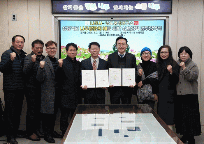 ³ªÁÖ½Ã¿Í ³²µµÇ³°æ¿¬±¸¼Ò°¡ 2ÀÏ °ü±¤ÀÚ¿ø ±â·Ï ¹× È®»ê°ú ³ªÁֹ湮ÀÇ ÇØ ¼º°ø ÃßÁøÀ» À§ÇÑ ¾÷¹«Çù¾àÀ» ü°áÇß´Ù.