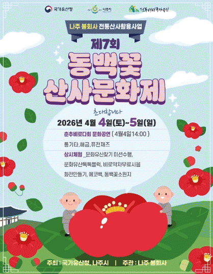 2ÀÏ ³ªÁֽÿ¡ µû¸£¸é ±¹°¡À¯»êû°ú ³ªÁֽð¡ ÁÖÃÖÇÏ°í ´ëÇѺұ³Á¶°èÁ¾ ºÒȸ»ç(ÁÖÁö öÀνº´Ô)°¡ ÁÖ°üÇÏ´Â ¡®2026³â ÀüÅë»ê»ç ±¹°¡À¯»ê Ȱ¿ë»ç¾÷ Á¦7ȸ µ¿¹é²É »ê»ç¹®ÈÁ¦¡¯°¡ ¿À´Â 4¿ù 4ÀϺÎÅÍ 5ÀϱîÁö ÀÌÆ²°£ ³ªÁÖ ºÒȸ»ç ÀÏ¿ø¿¡¼ ¿¸°´Ù.