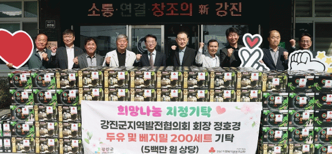 °Áø±ºÁö¿ª¹ßÀüÇùÀÇȸ Á¤È£°æ ȸÀåÀÌ Áö³ 2ÀÏ °Áø±ºÃ»À» ¹æ¹®ÇØ °ü³» Ãë¾à°èÃþÀ» À§ÇÑ µÎÀ¯ ¹× º£Áö¹Ð 200¼¼Æ®(500¸¸ ¿ø »ó´ç)¸¦ ÁöÁ¤±âŹÇϸç Áö¿ª»çȸ¿¡ ÈÆÈÆÇÑ °¨µ¿À» ÀüÇϰí ÀÖ´Ù.