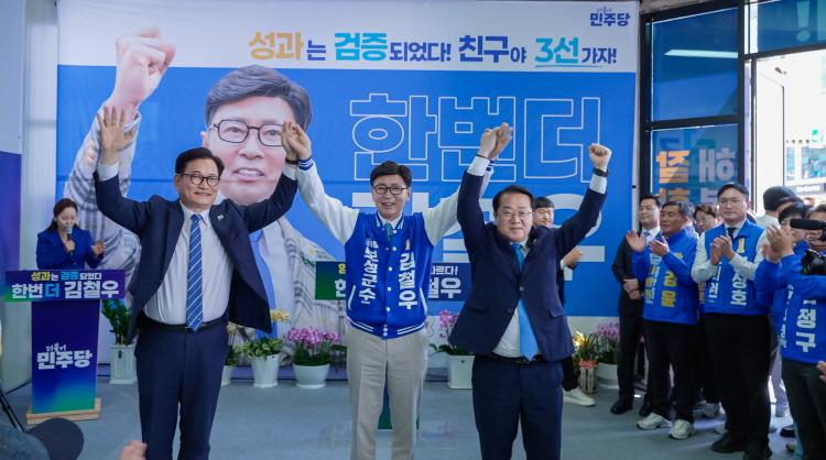 ¼Û¿µ±æ Àü)´õºÒ¾î¹ÎÁÖ´ç ´ëÇ¥¿Í ¹®±ÝÁÖ ±¹È¸ÀÇ¿øÀÌ ±èö¿ì º¸¼º±º¼ö ¿¹ºñÈĺ¸ °³¼Ò½Ä¿¡ Âü¼®ÇØ ÃàÇÏ ±â³ä »çÁøÀ» Âï°í ÀÖ´Ù. / »çÁø: ±èö¿ì ¿¹ºñÈĺ¸ Ãø Á¦°ø