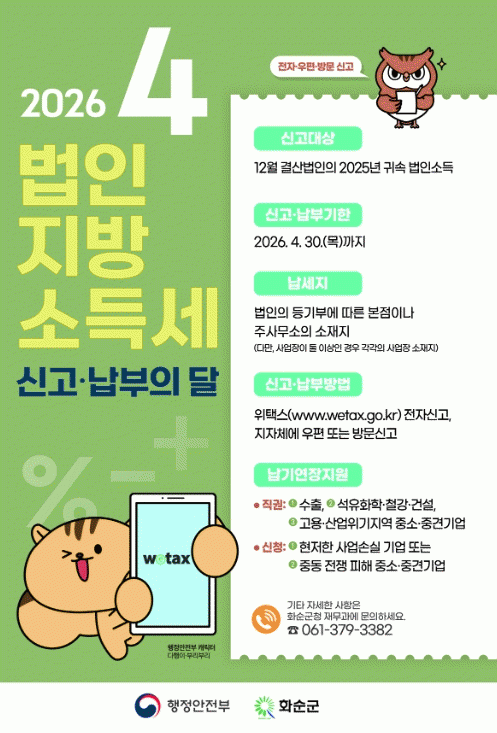 ȼø±ºÀº 2025³â 12¿ù ¸» °á»ê¹ýÀÎÀ» ´ë»óÀ¸·Î ¿À´Â 4¿ù 30ÀϱîÁö ¹ýÀÎÁö¹æ¼Òµæ¼¼ ÁýÁß ½Å°í¡¤³³ºÎ ±â°£À» ¿î¿µÇÑ´Ù°í ¹àÇû´Ù.