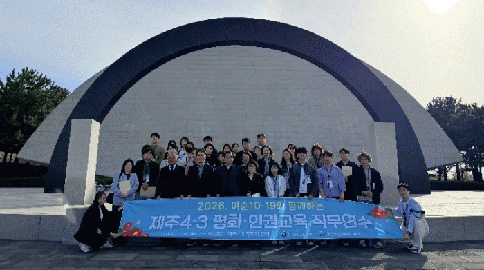 À̹ø ¿¬¼ö´Â Àü³²°ú Á¦ÁÖÀÇ ¿ª»çÀû °æÇèÀ» ±³À°À¸·Î ¿¬°èÇÏ´Â ÇÁ·Î±×·¥À¸·Î, Àü³²±³À°Ã»°ú Á¦ÁÖÆ¯º°ÀÚÄ¡µµ±³À°Ã»ÀÌ °øµ¿ ¿î¿µÇÑ´Ù. Á¦ÁÖ4¡¤3°ú ¿©¼ø10¡¤19¿¡ ´ëÇÑ ¿ª»ç ÀνÄÀ» ½ÉÈÇϰí, ÆòÈ¡¤Àαǡ¤ÅëÀϱ³À° ¿ª·®À» °ÈÇϱâ À§ÇØ ¸¶·ÃµÆÀ¸¸ç, Á¦ÁÖ4¡¤3 ÆòȰø¿ø°ú ÁÖ¿ä À¯ÀûÁö ÇöÀå Ž¹æ Áß½ÉÀ¸·Î ÀÌ·ïÁø´Ù.