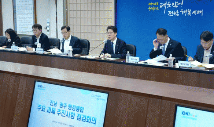 Àü¶ó³²µµ´Â 17ÀÏ µµÃ» ¼ÀçÇʽǿ¡¼ Àü³²¡¤±¤ÁÖ ÇàÁ¤ÅëÇÕ ÁÖ¿ä °úÁ¦ ÃßÁø»óÇ× Á¡°ËȸÀǸ¦ ¿¾î ¿À´Â 7¿ù 1ÀÏ Ãâ¹üÇÏ´Â Àü³²±¤ÁÖÅëÇÕÆ¯º°½ÃÀÇ ¼º°øÀû ź»ý¿¡ ÃÑ·ÂÀ» ±â¿ïÀ̱â·Î Çß´Ù.