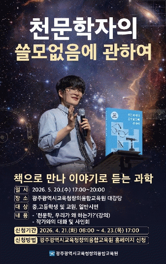 ±¤Áֽñ³À°Ã»Ã¢ÀÇÀ¶ÇÕ±³À°¿øÀº ¿À´Â 5¿ù 20ÀÏ ¿ÀÈÄ 5½Ã º»¿ø ´ë°´ç¿¡¼ À¯Æ©¹ö ¡®¿ìÁÖ¸ÕÁö¡¯ Áö¿õ¹è ±³¼ö ÃÊû °úÇРƯ°À» ¿î¿µÇÑ´Ù.